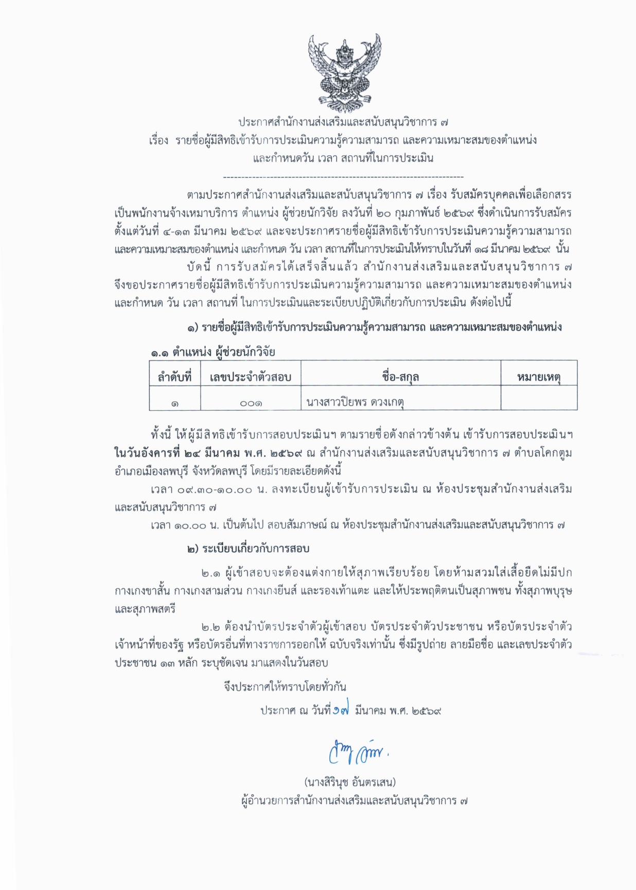 ประกาศ รายชื่อผู้มีสิทธิเข้ารับการประเมินความรู้ความสามารถ และความเหมาะสมของตำแหน่ง ผู้ช่วยนักวิจัย คลิกดาวน์โหลดเอกสาร ต่อไป